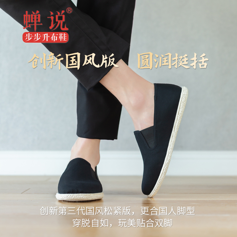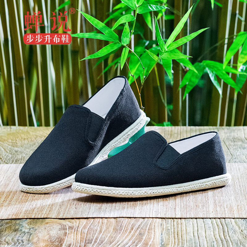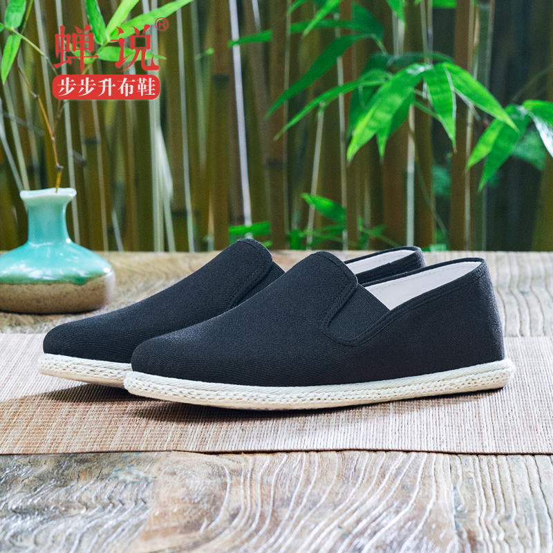蝉说步步升手工布鞋男千层底传统黑色老北京青中老年春秋休闲单鞋