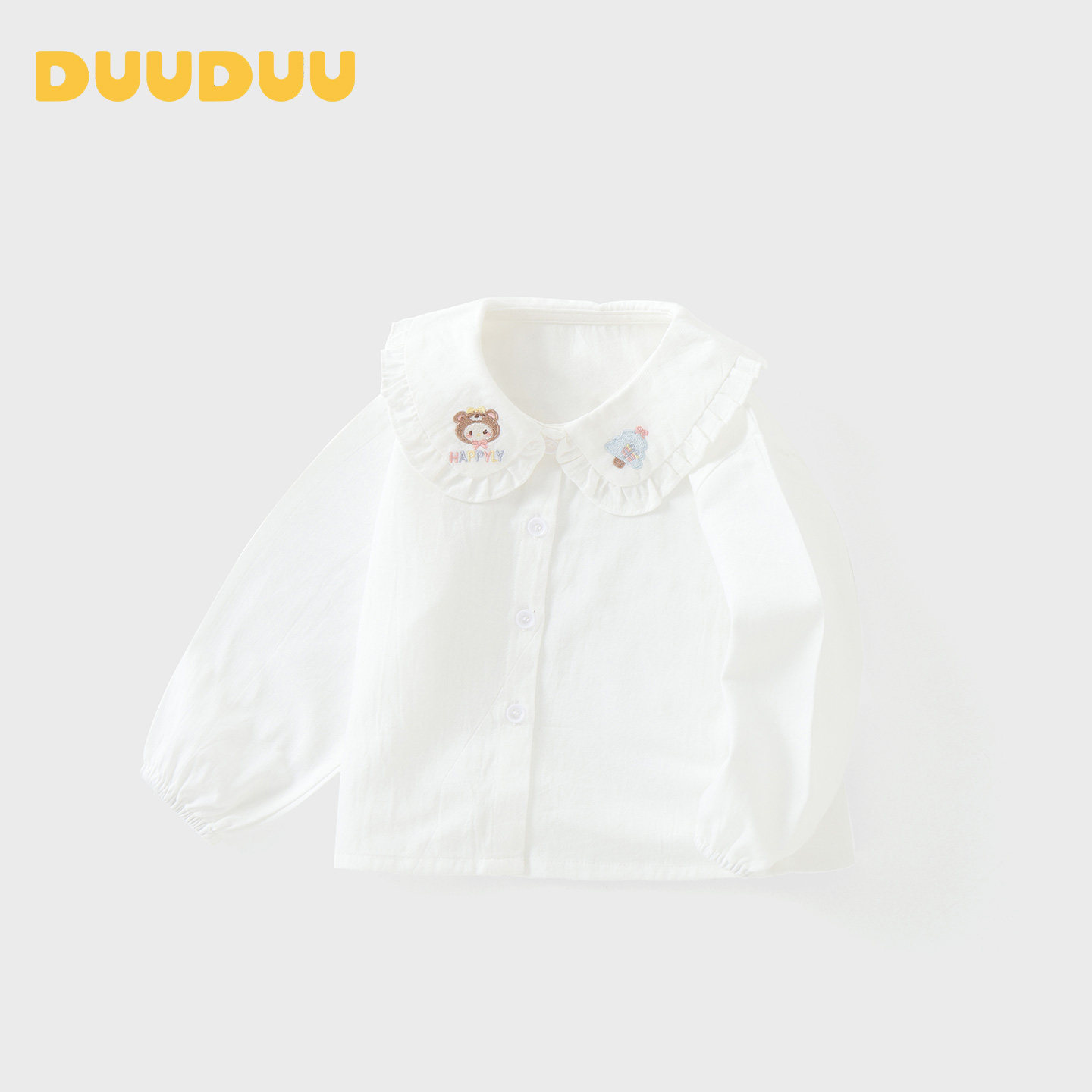 DUUDUU女童衬衫春装洋气宝宝白色上衣儿童公主翻领打底衫春秋季