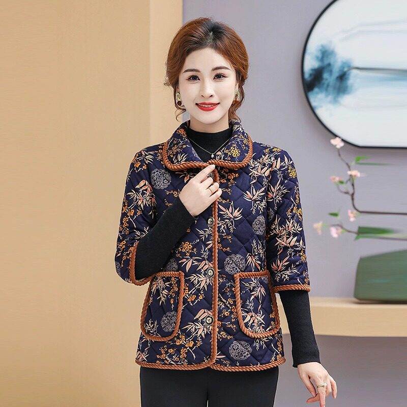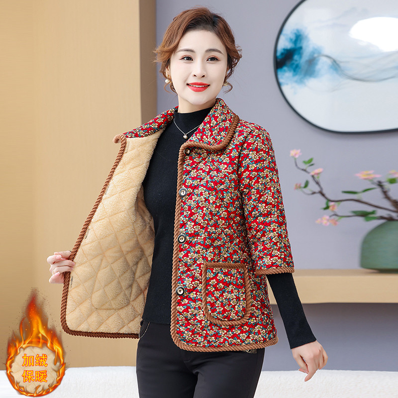 中老年女妈妈装加绒七分袖棉衣