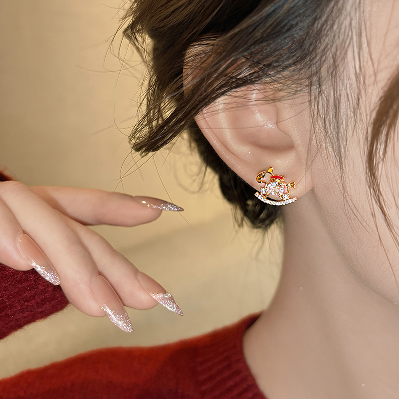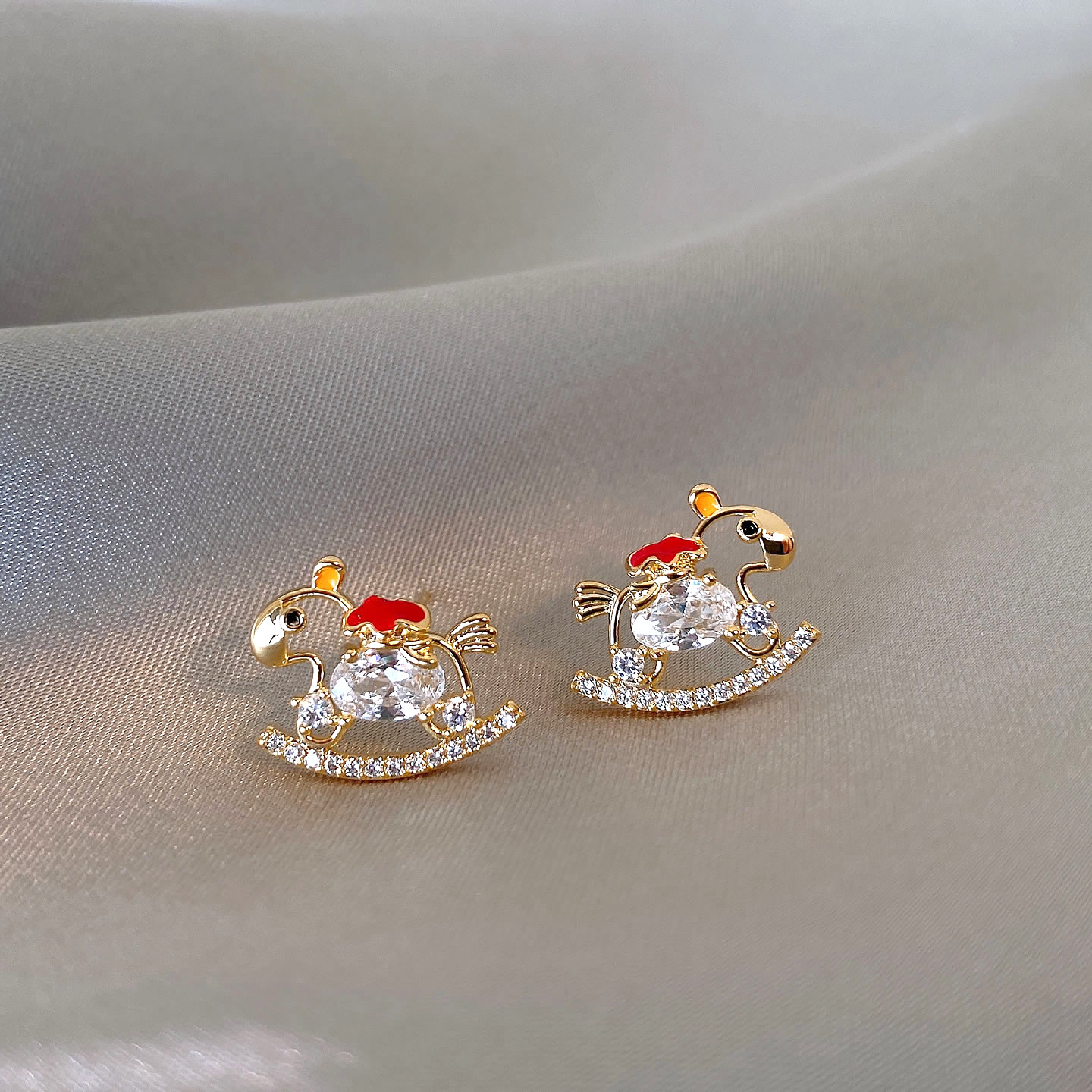 金色锆石镂空木马耳钉女2025新款爆款高级感耳饰精致耳环独特漂亮