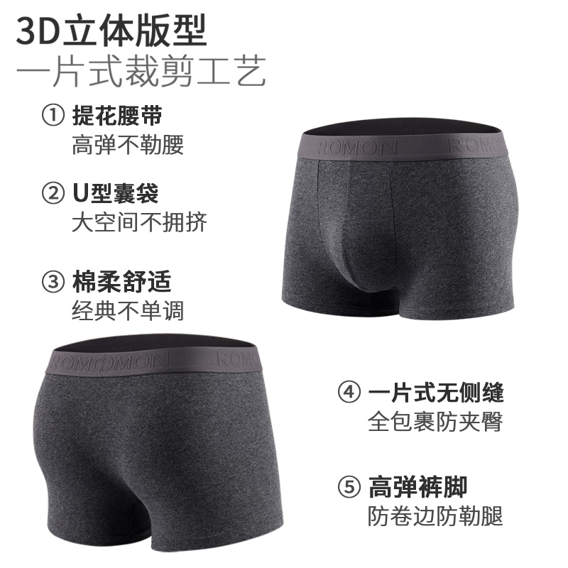 罗蒙纯棉男士内裤四角裤男生抗菌加大码宽松男式短裤2024秋季新款
