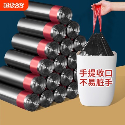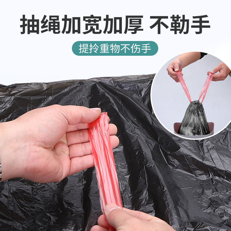 加厚抽绳垃圾袋家用手提式黑色大号厨房塑料袋实惠装收纳办公室