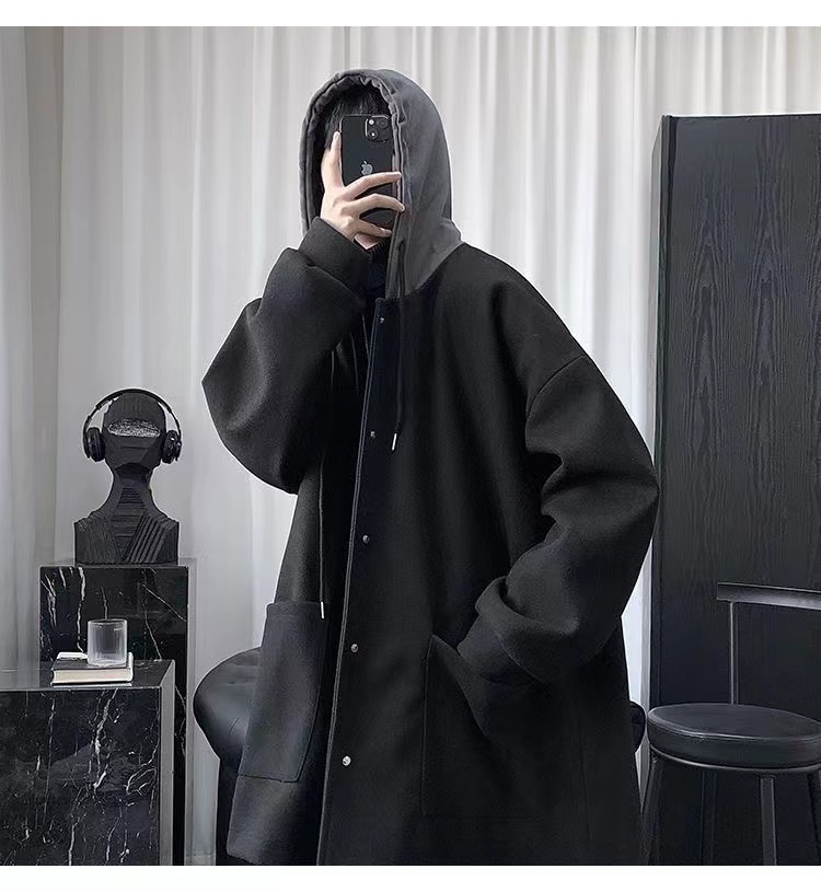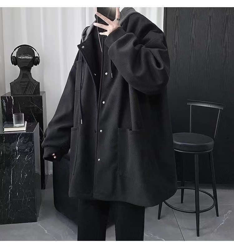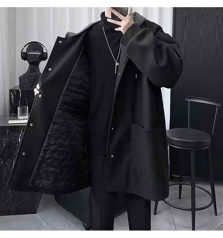 痞帅套装男秋冬季毛呢大衣加厚夹棉外套男装搭配一整套帅气三件套