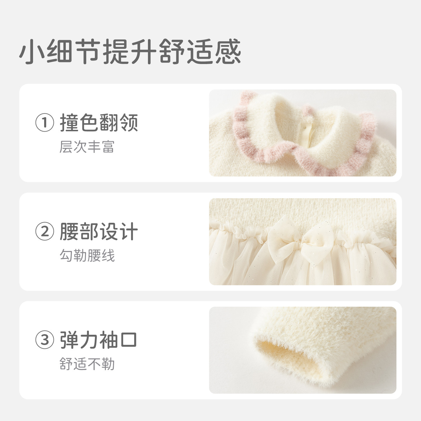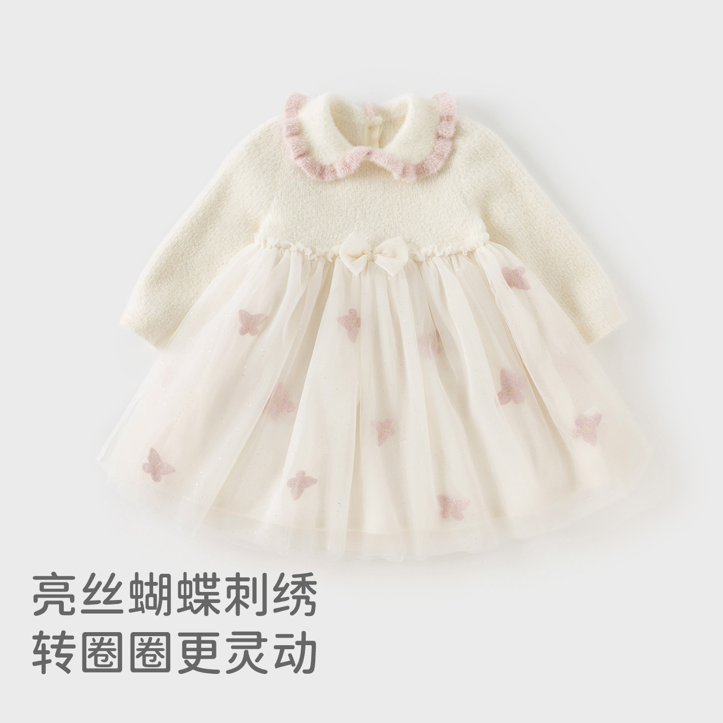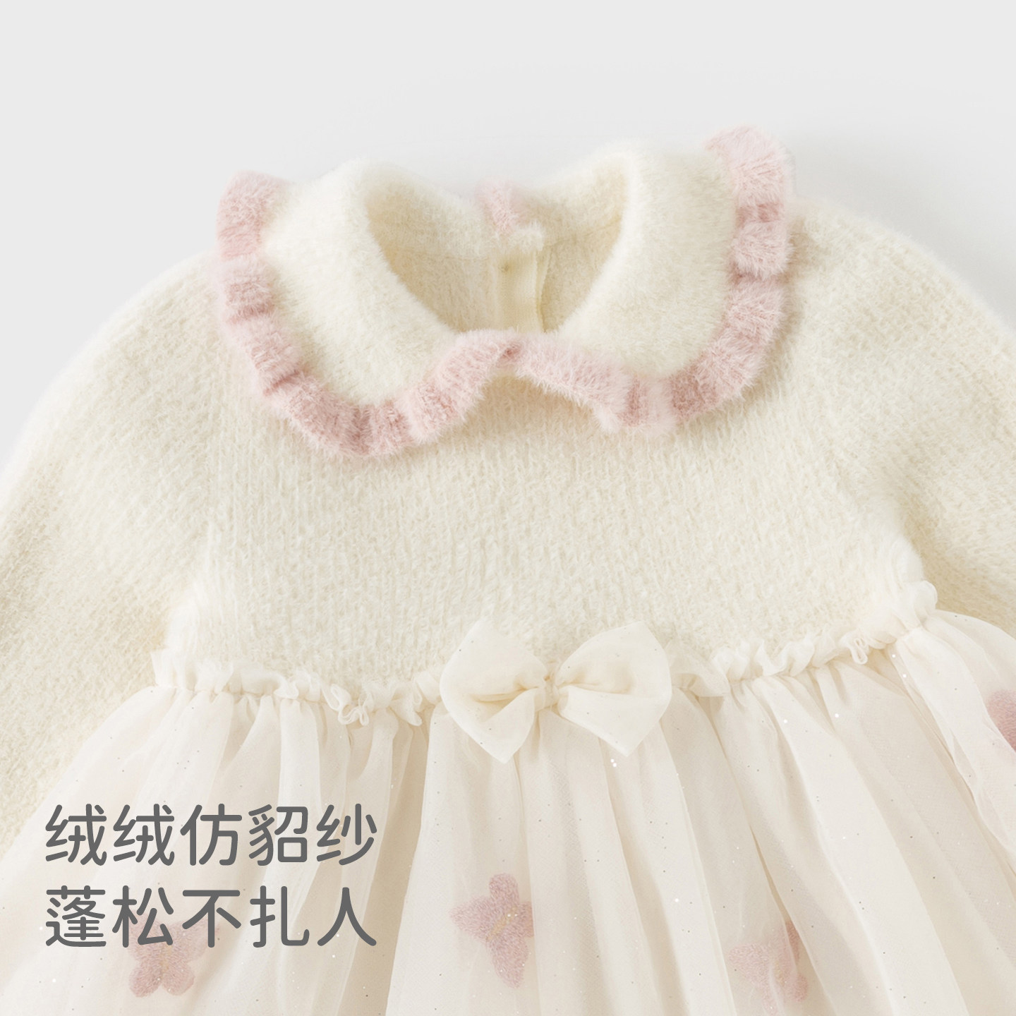 戴维贝拉儿童毛衣连衣裙2025女童A类仿貂绒网纱裙女秋冬新款裙子