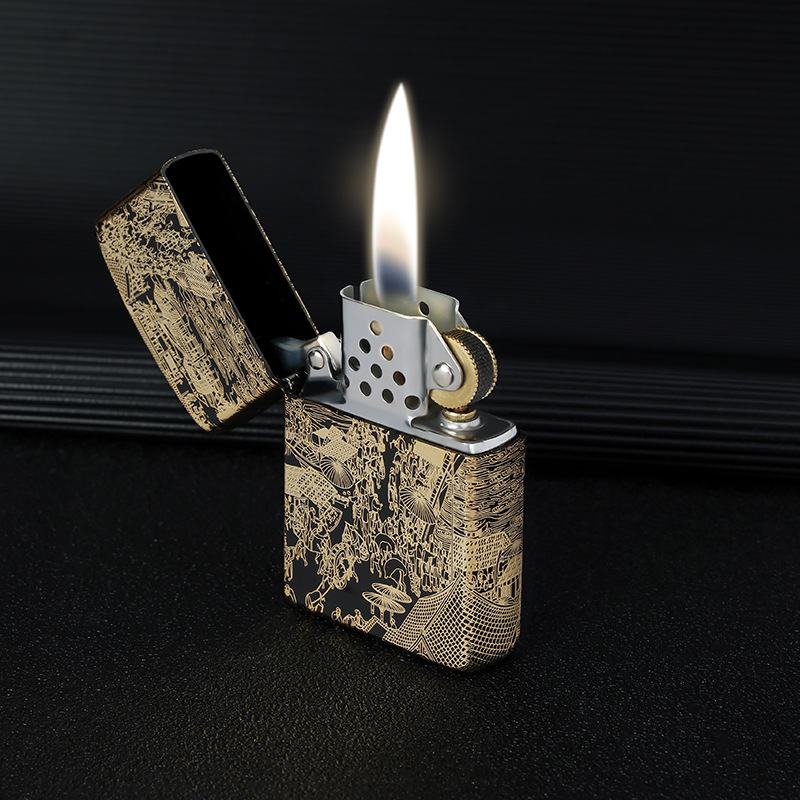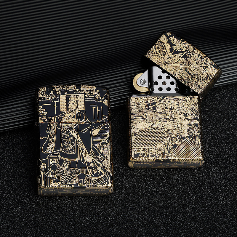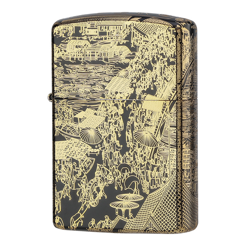 ZORRO佐罗正品纯铜砂轮防风煤油打火机黑鎏金清明上河图千古一帝