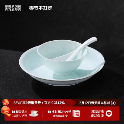 景德镇官方陶瓷纯色影青餐具家用中式精致饭碗汤碗盘子乔迁送礼