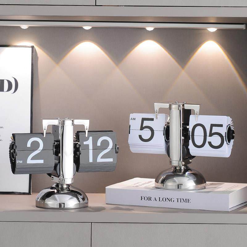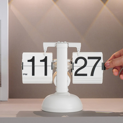 现代简约创意自动翻页时钟日历客厅桌面钟表摆件座钟机械座钟装饰
