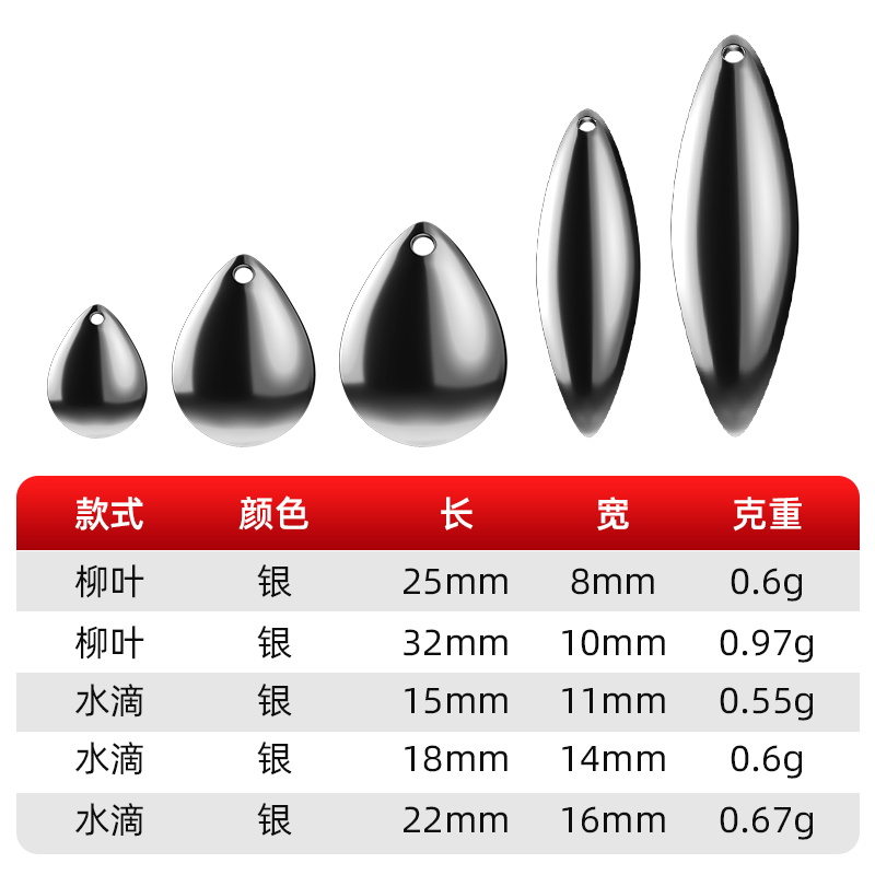 路亚百搭复合旋转水滴亮片噪音柳叶亮片加厚金属片胡须佬DIY配件