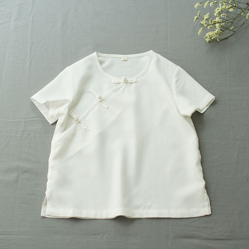 男童汉服夏季轻薄款唐装女童中国风短袖上衣改良版丝麻小童复古装