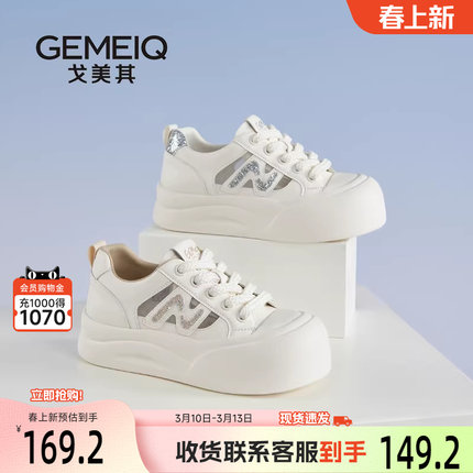 戈美其商场同款厚底小白鞋女款2025新款夏季薄款透气百搭休闲板鞋