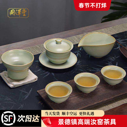 周泽堂汝窑茶具套装家用高档陶瓷盖碗茶杯茶壶茶具礼盒装送礼礼品