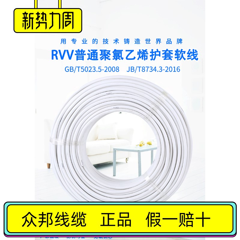 众邦RVV软护套线2/3/4芯0.75/1/1.5/2.5/4/6平方国标铜芯电线电缆
