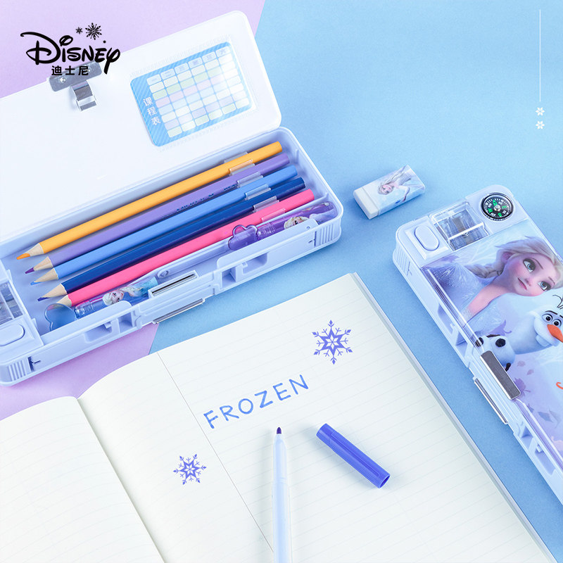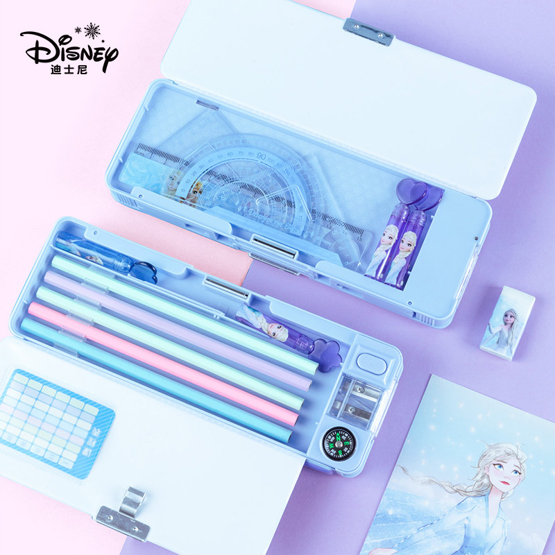 联众迪士尼冰雪奇缘多功能文具盒女孩子款儿童小学生一年级大容量塑料自动铅笔盒双层2026年新款艾莎笔袋笔盒