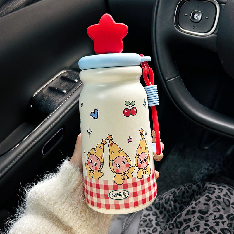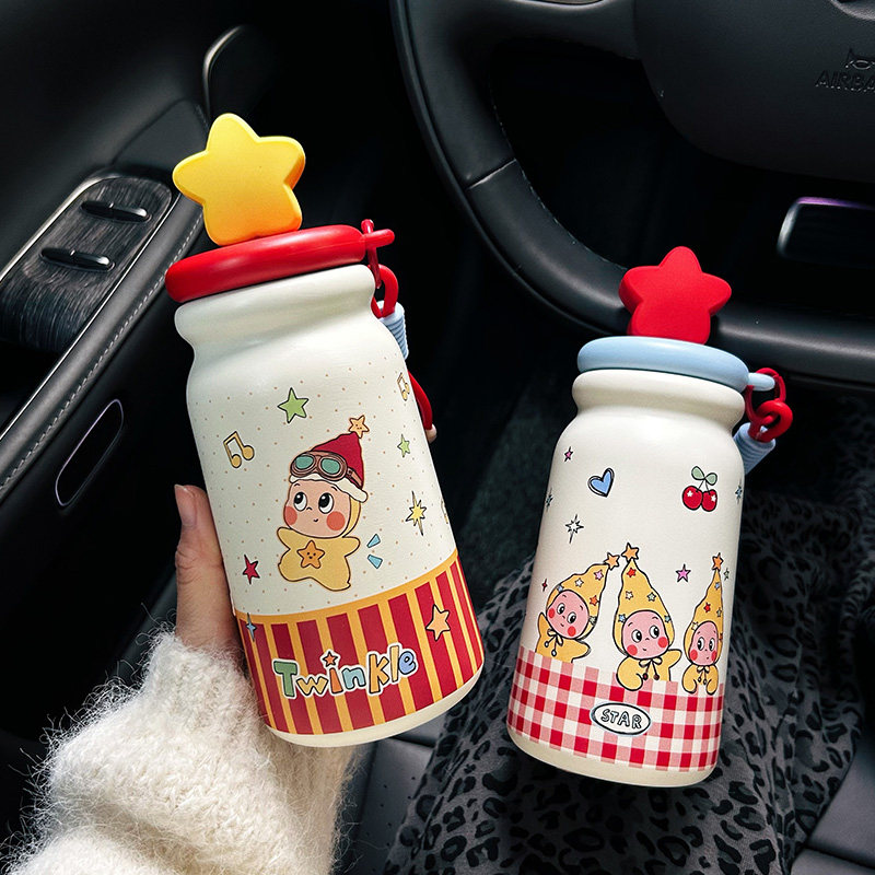 多巴胺卡通保温杯2025新款陶瓷内胆随行杯男女便携吸管杯茶水分离