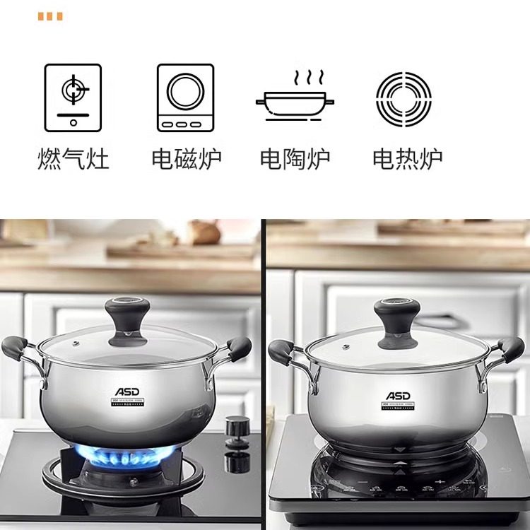 爱仕达304不锈钢汤锅加厚电磁炉炖锅家用燃气小汤锅煮粥熬汤蒸锅