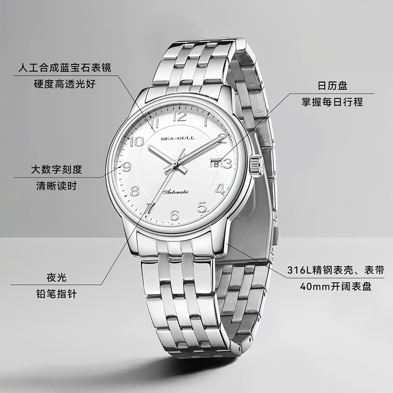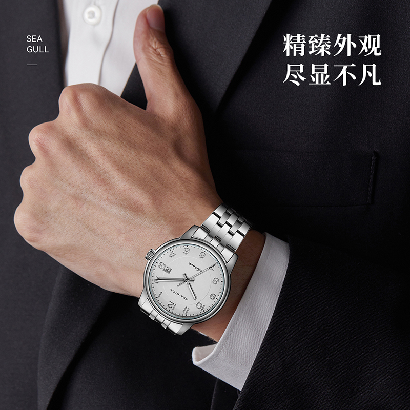 海鸥表男士经典简约商务休闲钢带夜光全自动机械手表男款男表6174