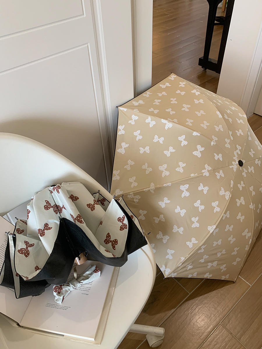 馨帮帮杂货铺便携折叠黑胶太阳伞防晒遮阳伞蝴蝶结雨伞女晴雨两用