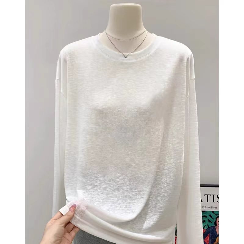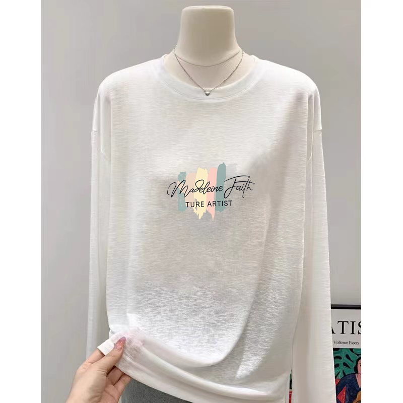 韩版潮流风女装白色雪花棉正肩长袖t恤秋季宽松百搭上衣ins打底衫