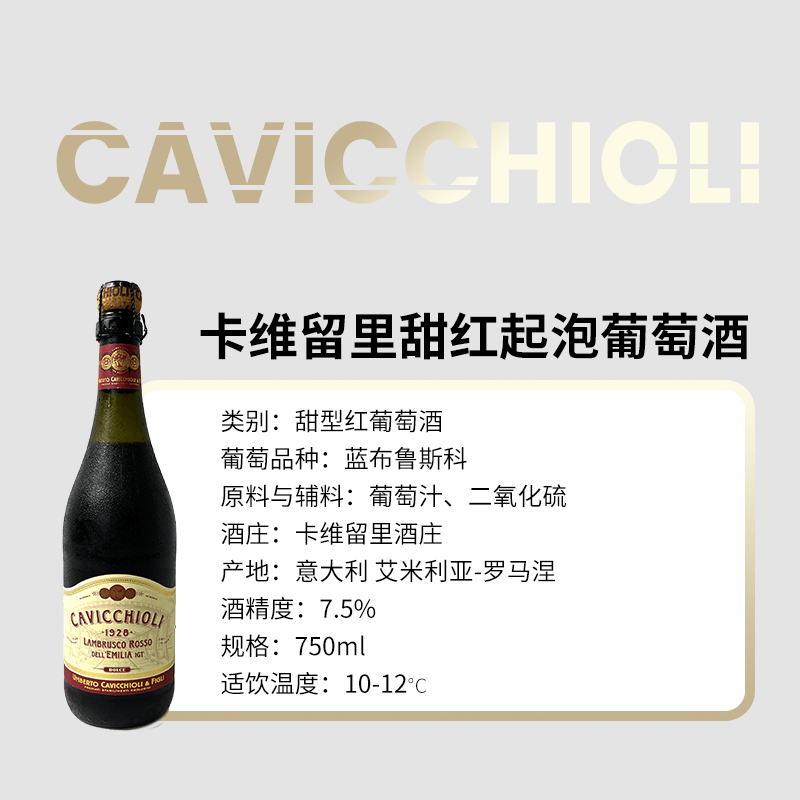 卡维留里意大利原瓶进口甜红起泡酒葡萄酒微醺女士甜酒热红酒晚安