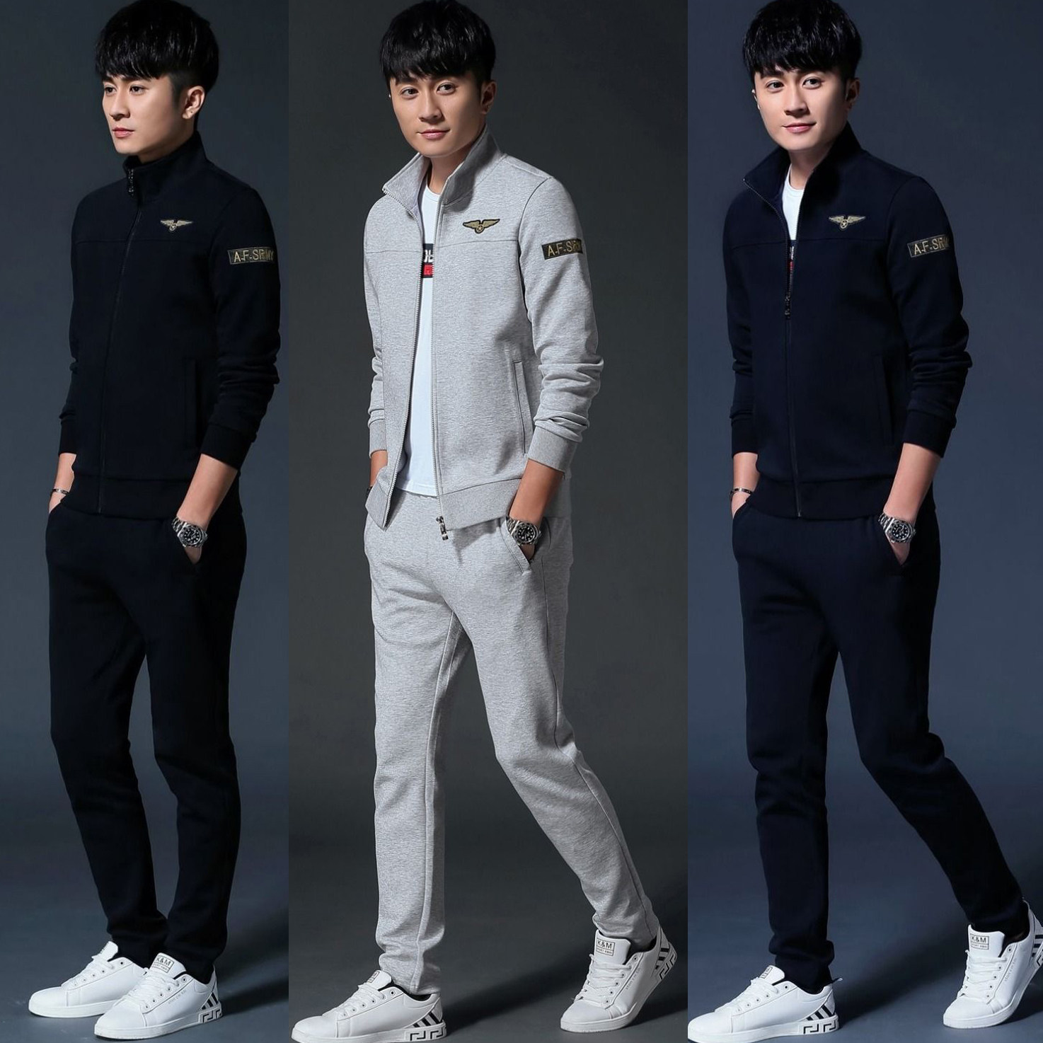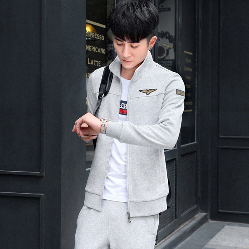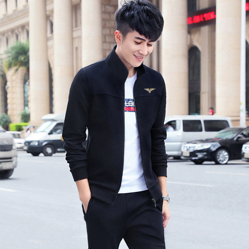 男士休闲运动套装2024春秋新款跑步服三件套中青年立领拉链长外套