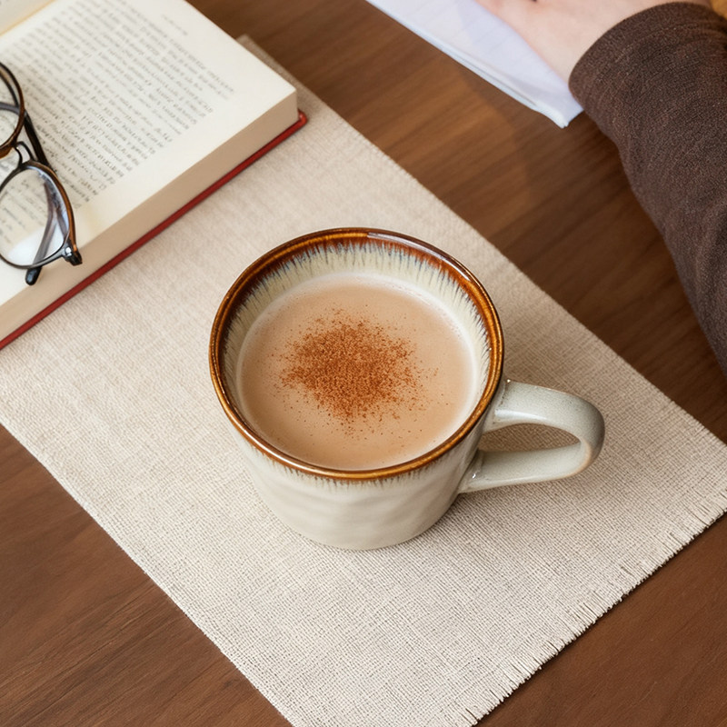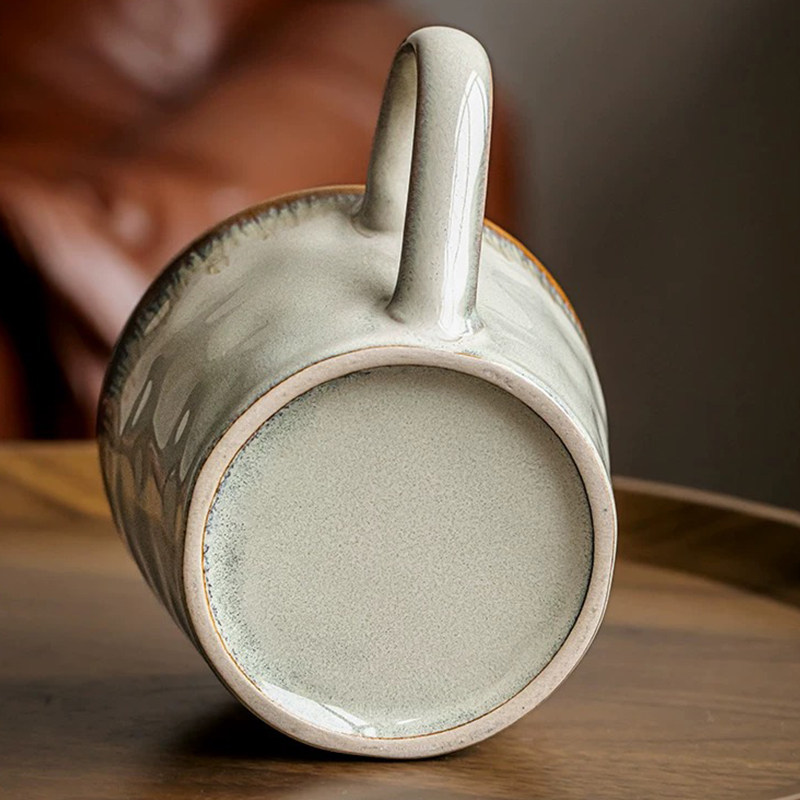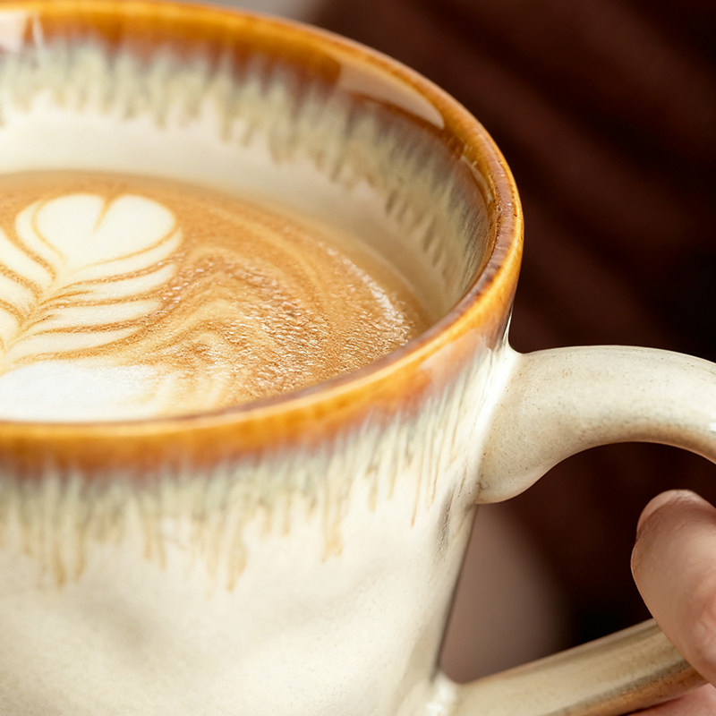 中古风釉下彩简约陶瓷马克杯拉花咖啡杯淡黄色手感舒适家用杯微瑕