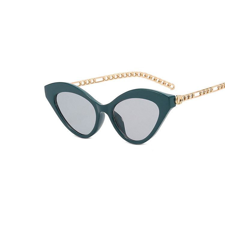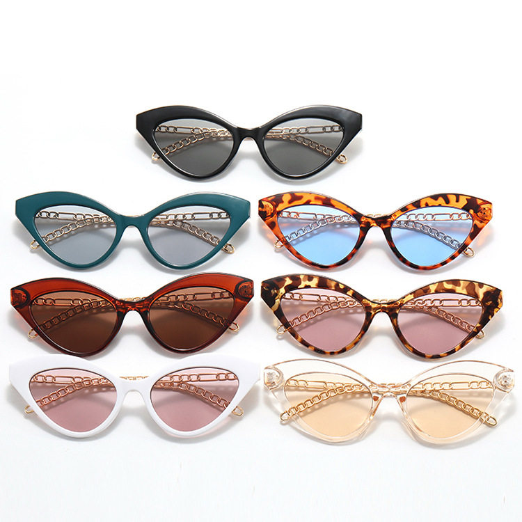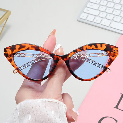 复古猫眼墨镜链条镜腿摩登个性太阳镜三角上扬小框眼镜装饰镜架女