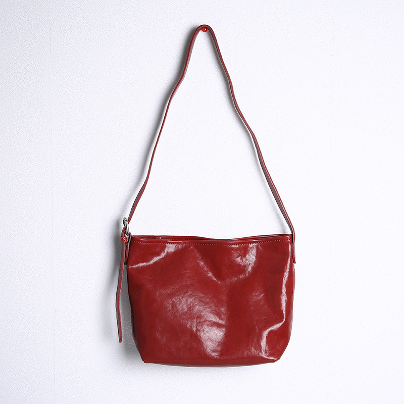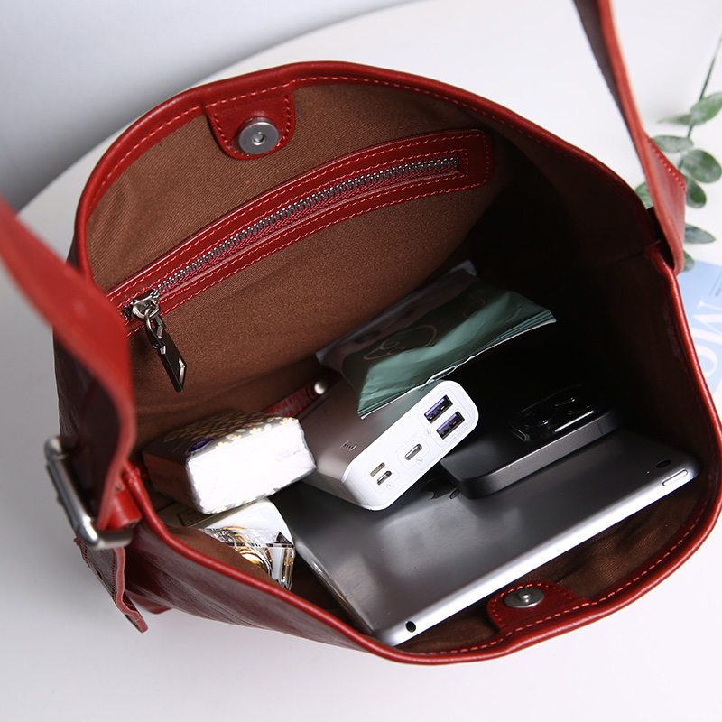 小众高级感红色腋下包女真皮水桶包时尚欧美风头层牛皮通勤单肩包