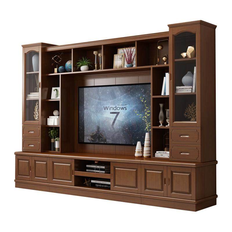 实木电视柜组合墙柜中式客厅多功能储物背景柜现代简约组装影视柜