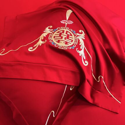 140支长绒棉结婚四件t套陪嫁被套红色全棉床单新婚庆床品8