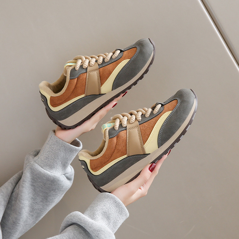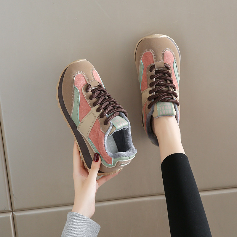 品牌真皮华夫阿甘运动鞋女轻便防滑休闲鞋软底跑步鞋加绒保暖棉鞋