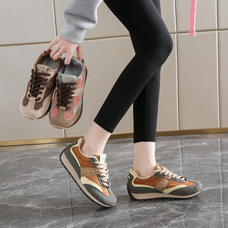 紅晴珽真皮加绒华夫阿甘运动鞋女