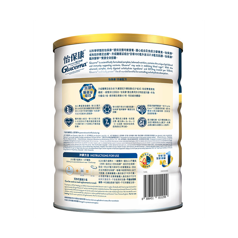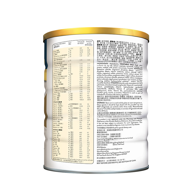 港版Abbott 雅培新版怡保康营养粉糖尿人中老年高血糖营养品850g