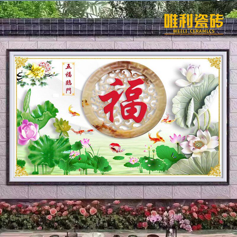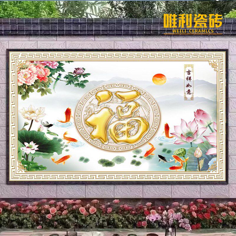 农村自建房庭院瓷砖背景墙壁画高温烧制微晶石福字迎门墙影壁墙砖