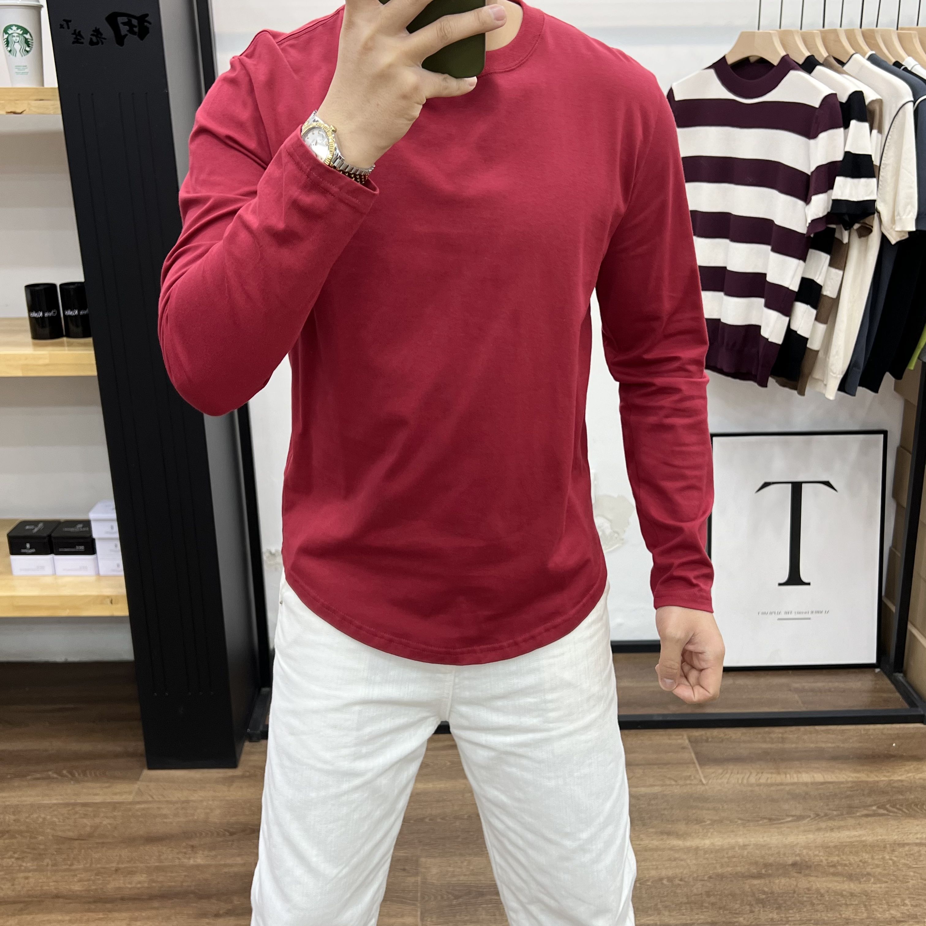 圆领纯棉美式运动休闲长袖T恤男修身百搭打底衫健身宽松卫衣春秋