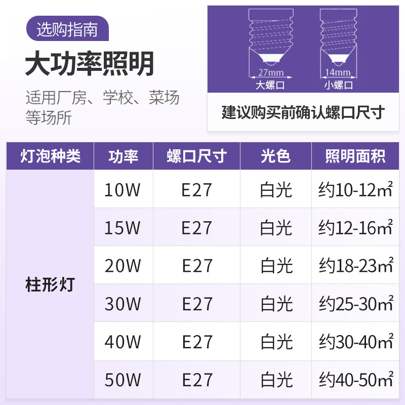 公牛led大功率灯泡超亮工厂房车间仓库e27螺纹口30w50W68瓦柱形灯