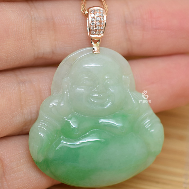 18k金扣头豪华三排钻石加厚翡翠