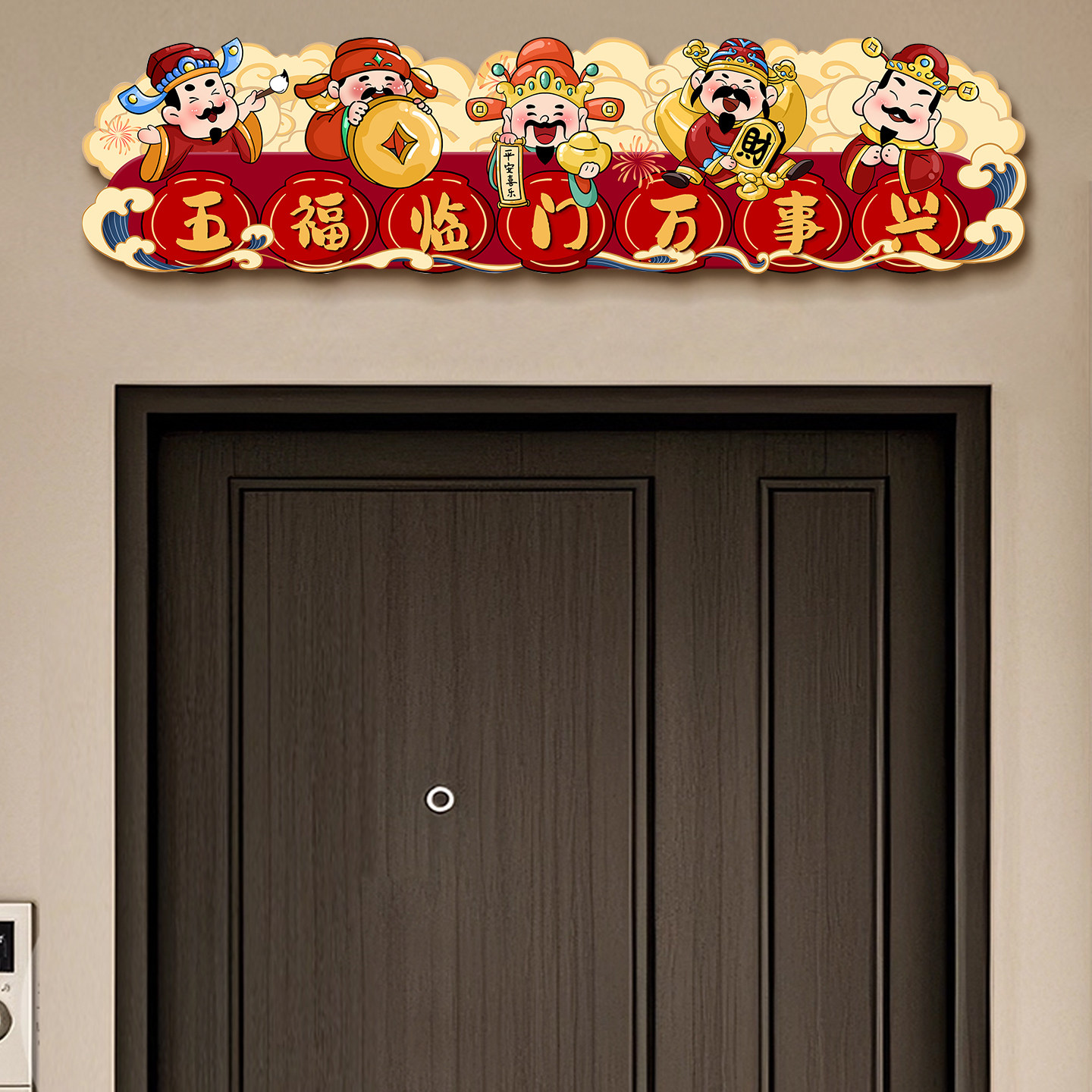 天官赐福客厅卧室餐厅财神入户门上装饰贴画电视背景墙墙面自粘画