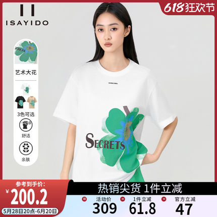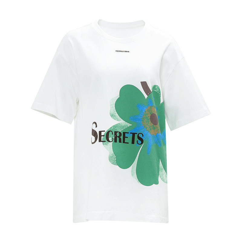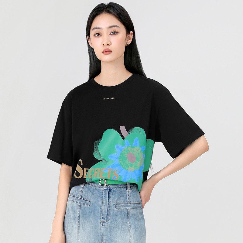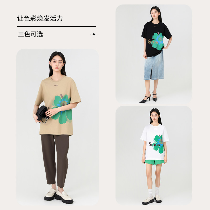 傲丝度印花纯棉短袖T恤2025夏新款减龄大花朵慵懒风小众设计上衣