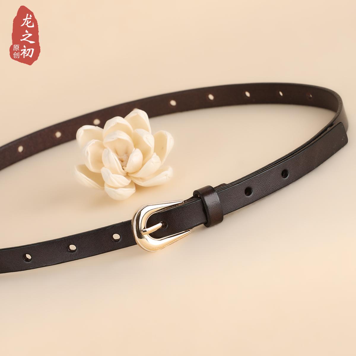 头层牛皮小腰带女咖色简约时尚多孔细皮带时尚文艺秋冬新款裤带窄