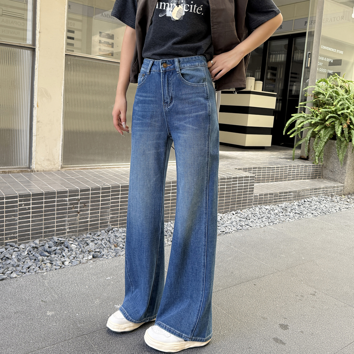 颜色超美~洋气蓝色微喇牛仔裤女秋季2025新款高腰宽松显瘦阔腿裤