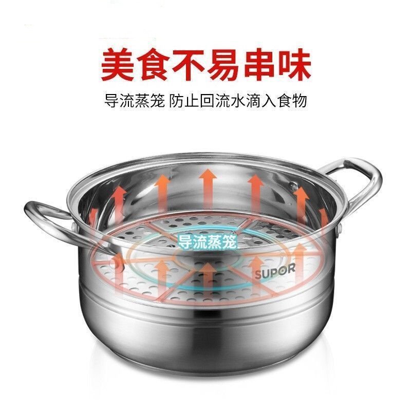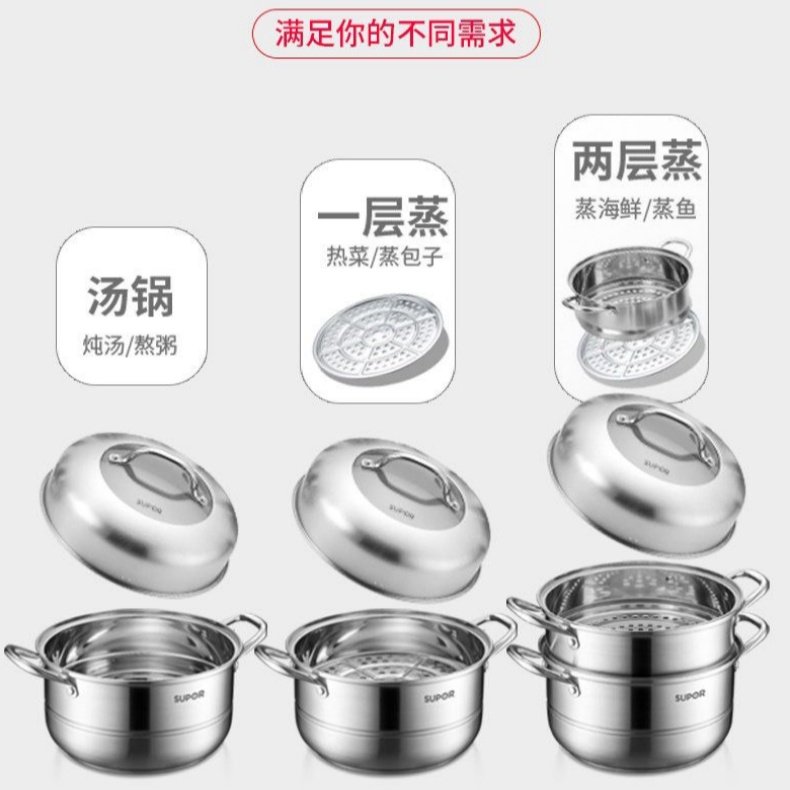 苏泊尔蒸锅304食品级不锈钢家用三层蒸煮多用锅SZ28B25加厚通用