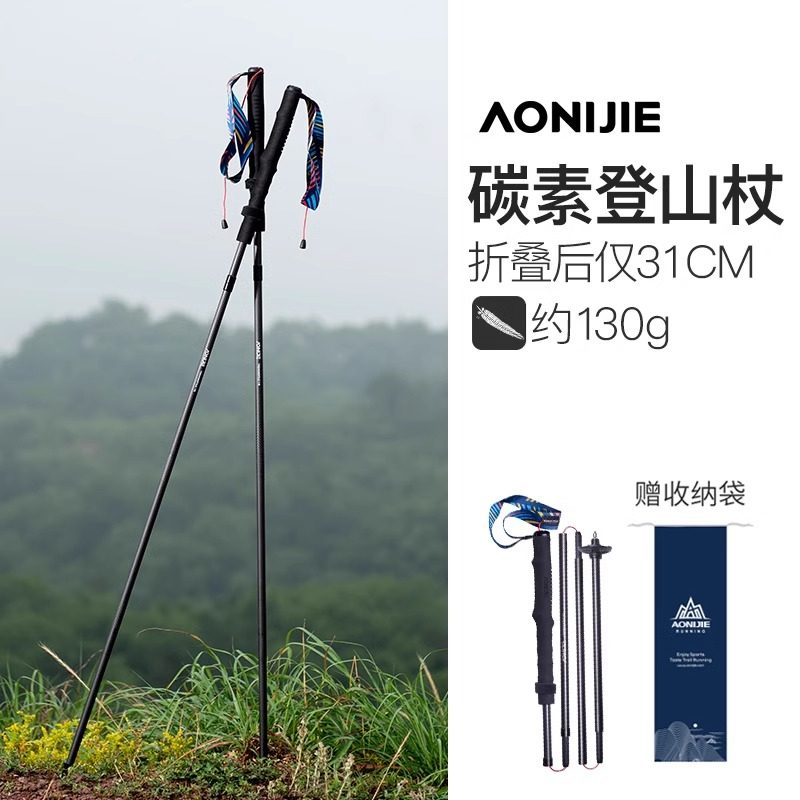 奥尼捷碳纤维登山杖碳素超轻折叠拐杖男女爬山装备户外徒步手杖
