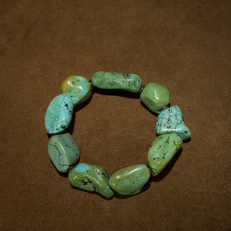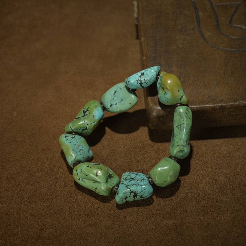 清代藏传天然原矿随型老绿松石手钏古玩手串精品宝石收藏品包邮
