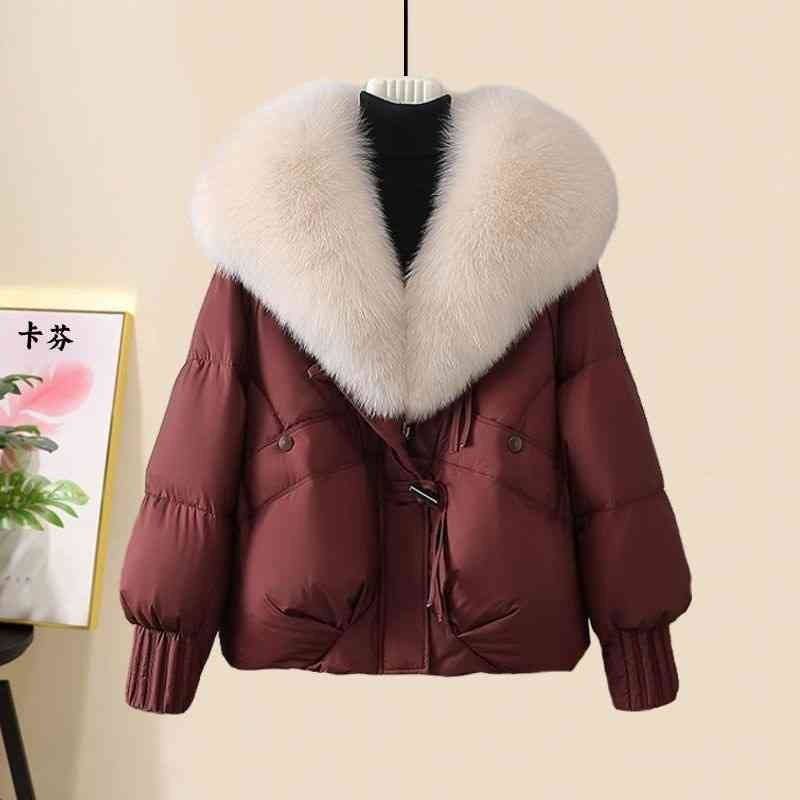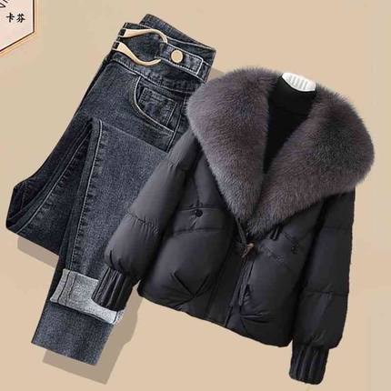 大毛领轻奢2025冬季新款时尚短款百搭棉衣保暖棉服韩版加厚外套女