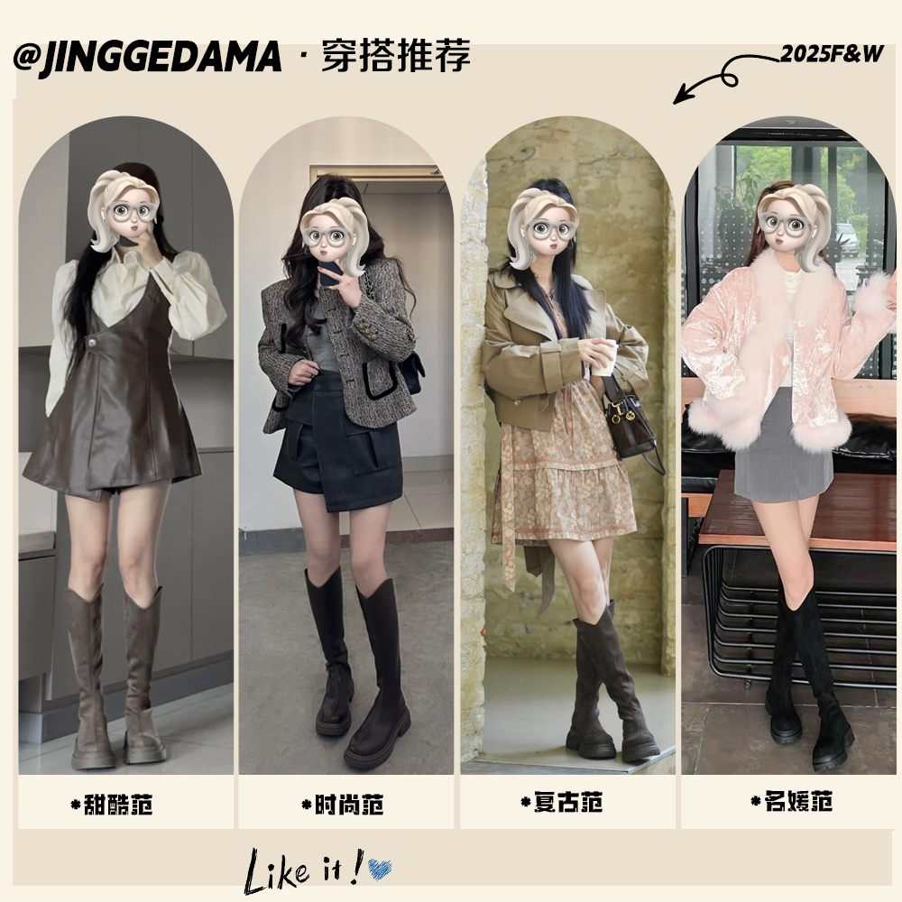 BL静哥大码女鞋大筒围粗腿厚底长靴长筒靴高筒靴骑士靴子A55050