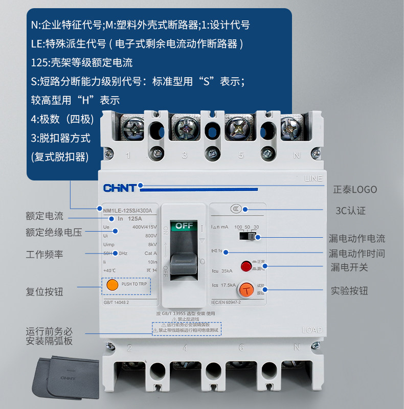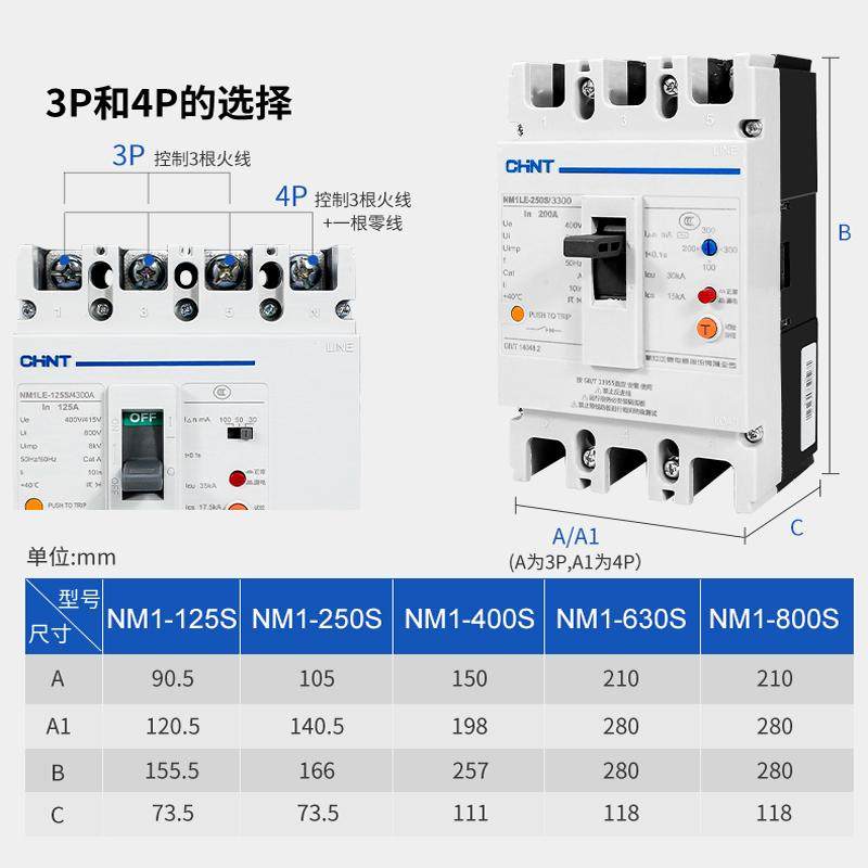 正泰断路器带漏电保护开关NM1LE-100A -400A三相四线漏保总制250A