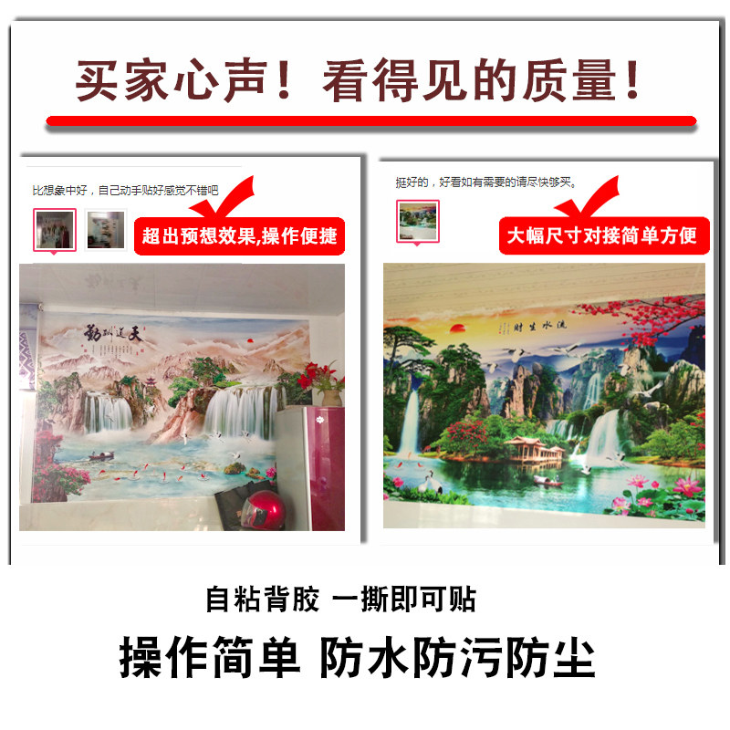 来字来图定做山水画海报墙纸自粘背胶油画布酒店餐厅家装工装壁画