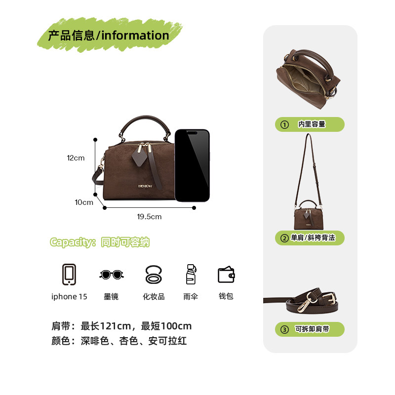稻草人牛皮包包女秋冬新款时尚百搭手提波士顿包包通勤斜挎女包