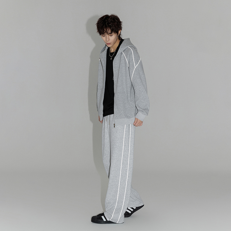 回力休闲运动套装男士春秋季2025新款反光条纹卫衣卫裤搭配两件套