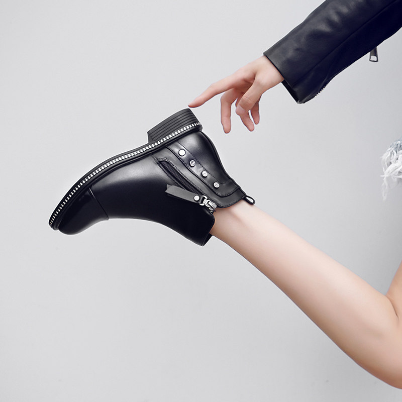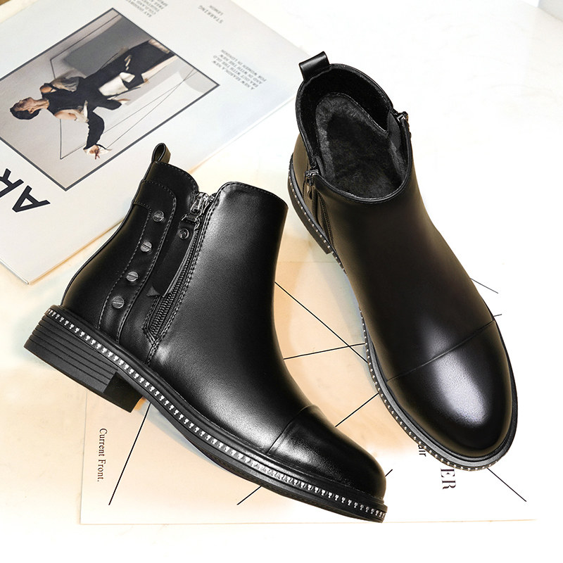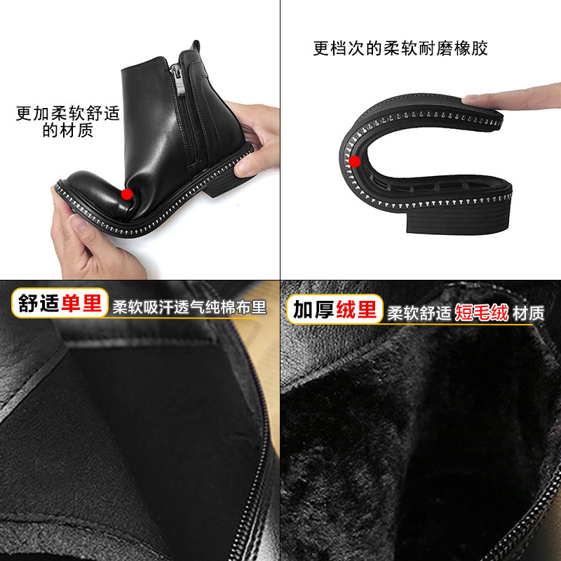 2025冬季新款平底短靴粗跟马丁靴英伦风加绒裸靴女靴子春秋款单靴